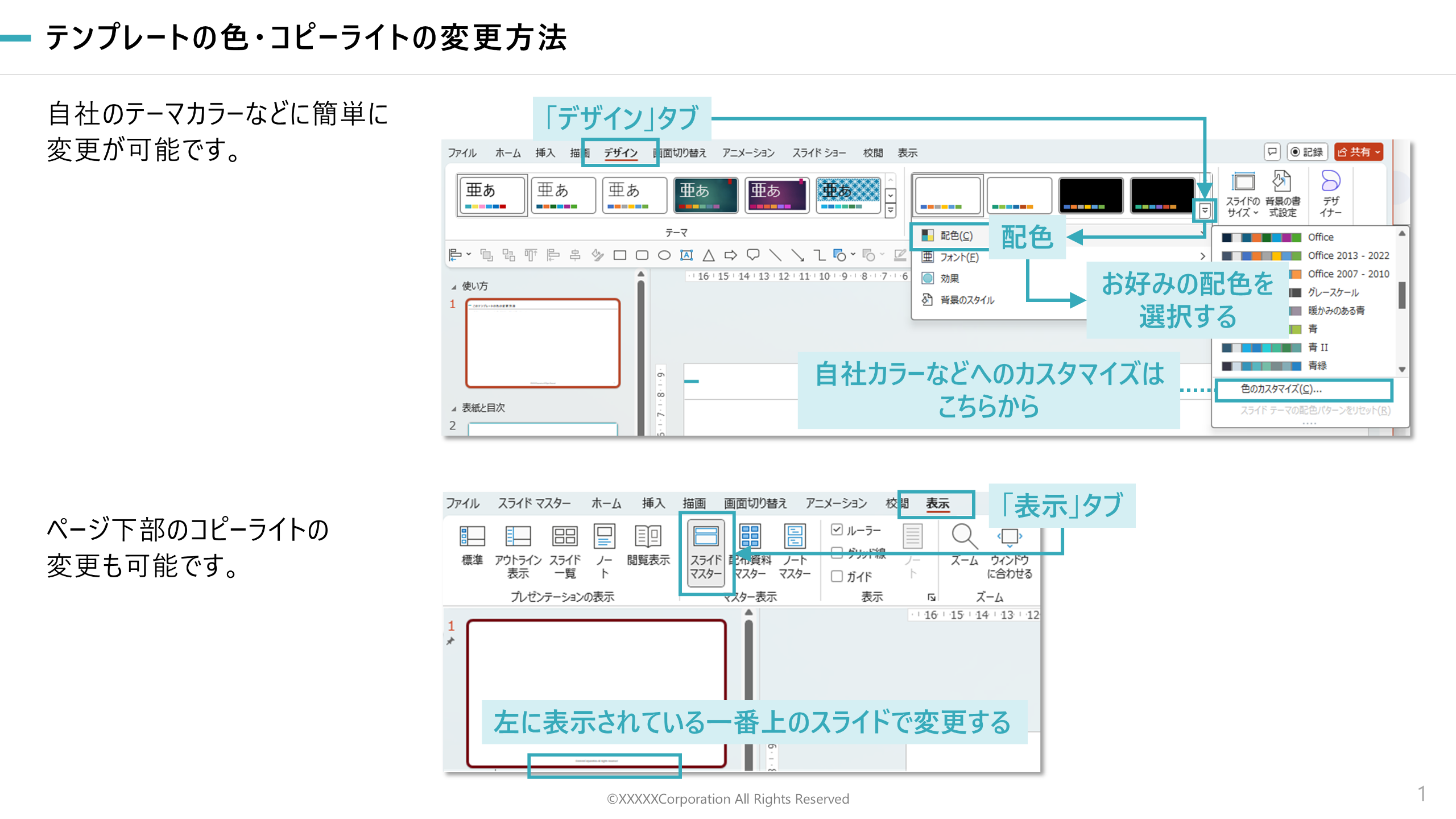 テンプレートの色とコピーライトのみ変更して、すぐに利用いただけます。